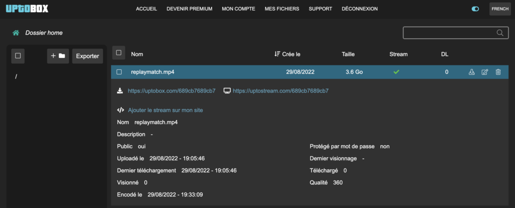 3. Environ un jour plus tard, le fichier a été traité pour Uptostream :